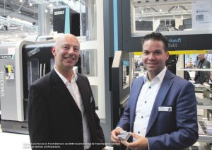 Op een vrijdagmiddag spreken we af met Freek Sensen, trotse eigenaar van een unieke BMO Titanium 180. Uniek omdat deze als extra service door BMO Automation is geleverd in de eigen gekozen kleuren van de klant. Dat Freek trots is op zijn nieuwe machine blijkt wel als hij op een van zijn Hermle machines klimt om van bovenaf een mooie foto van de nieuwe combinatie te maken.